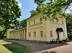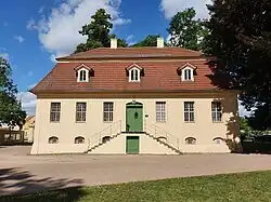 Zu den Nebengebäuden gehört die ehemalige Orangerie, die gegenüber dem Schloss steht und seit 2004 nach einer Sanierung gastronomisch genutzt wird. Die Orangerie entstand etwa um 1820 und geht vermutlich ebenfalls auf Siegel zurück.[1] Zur Parkseite besteht ein Säulengang mit zwölf dorischen Säulen. An den Enden des in Nord-Süd-Richtung lang gestreckten Gebäudes befinden sich Kopfbauten. Ursprünglich diente das Gebäude als Winterquartier für die teilweise frostempfindlichen Pflanzen des Landschaftsparks. Im südlichen Kopfbau wohnte der Gärtner. In der Zeit der DDR diente die Orangerie zeitweise, neben der Kanzlei, als Museum. Die große Fensterfront war zugemauert worden und wurde im Zuge der Sanierung des Jahres 2004 wieder in alter Form hergestellt.