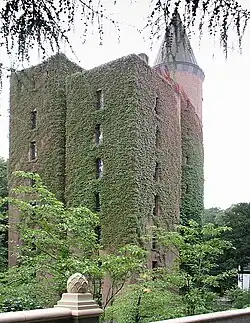 Nach dem Tod August Thyssens ließen seine Erben das Erdgeschoss des Bergfrieds zu einem Mausoleum für ihn und seine Nachkommen umgestalten. 1928 fand er dort seine letzte Ruhe. Sein Sohn Fritz Thyssen wurde 1951 und sein Sohn Hans Heinrich Thyssen-Bornemisza de Kászon 2002 im Mausoleum beerdigt.
