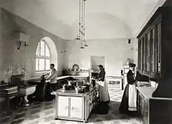 August Thyssen ließ das Schloss stark umgestalten und neue Bauten hinzufügen, so zum Beispiel den Wintergarten (Mitte) und ein dreigeschossiges Wohngebäude (oben rechts).