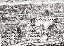 Auf dem Stich von 1730 besteht das Anwesen aus einem dreigeschossigen Herrenhaus mit einem Mittelrisalit und einem Walmdach mit Schleppgaupen. Durch eine Mauer und weitere Wirtschafts- und Wohngebäude wird ein unregelmäßiges Viereck gebildet, in dessen Mitte sich das Hammerwerk befindet. Eine Holzbrücke über die Vils führt zu dem Anwesen. Der gegenüberliegende Ausgang durch ein rundbogiges Tor führt vermutlich zu der Kapelle St. Antonius.