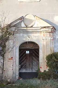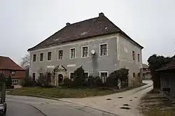 Das ehemalige Schloss ist ein zweigeschossiger Walmdachbau mit einem Pilasterportal und Putzrahmung.