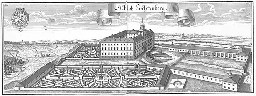 Am Anfang des Spanischen Erbfolgekriegs war hier im September 1702 das Hauptquartier Maximilian II. Emanuels, dessen etwa zwanzigtausend Mann umfassendes Heer in der Nähe auf dem Lechfeld lagerte.[6] Nach dem Rastatter Frieden sah Therese Kunigunde von Polen, die zweite Frau von Kurfürst Maximilian II. Emanuel, die nach Venedig geflohen war, am 3. April 1715 im Schloss Lichtenberg ihren Ehemann und ihre Kinder wieder.