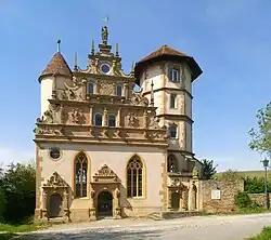 1590 bis 1599 wurde die Schlosskapelle im Renaissancestil im Auftrage Bernhards von Liebenstein († 1596) von dem Heilbronner Baumeister Jacob Müller erbaut. Dieser schuf auch im Auftrage von Bernhards Sohn Albrecht († 1608) das Liebenstein-Doppelgrabmal in der Bönnigheimer Kirche. Das Grabmal des Conrad von Liebenstein († 4. März 1620) in der Schlosskapelle befand sich einst im Kloster Itzingen.
