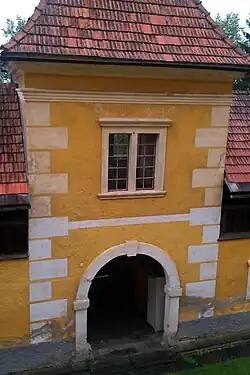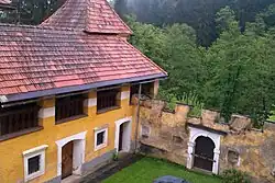 Der Baukörper stammt aus dem 16. und 17. Jahrhundert. Talseitig liegt eine Vorburg mit zentralem Torturm und zwei Ecktürmen an den Flanken, die mit dem Mittelbau durch Galerien verbunden sind. Zu erreichen ist die Vorburg über eine barocke Doppelfreitreppe, die Johann Ernst Karl von Ortenhofen um 1725 anlegen ließ. Die Vorburg ist mit dem Hauptschloss über Wehrmauern verbunden. Zwischen Hauptschloss und Vorburg verlief früher ein Graben, der von einer Brücke überspannt war. Der heutige Zugang führt über den Vorhof direkt in das Schloss. Jene Vierecktürme, die am Berghang die Mauern verstärkten, sind kaum noch übrig.[1]