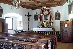 Eingebaut sind zwei übereinanderliegende Kapellen, von denen die obere die Gnadenkapelle Unserer Lieben Frau von Mariastein ist und die untere die Kapelle zum hl. Kreuz. Die ursprünglich gotische Gnadenkapelle wurde zwischen 1682 und 1685 gebaut, sie besitzt eine Gnadenmuttergottes (um 1450) und einen Rokoko-Altar aus dem 18. Jahrhundert. Das Gnadenbild ist eine liebliche gotische Madonna mit dem Jesukind, die ein unbekannter Meister aus dem salzburgisch-bayerischen Raum geschaffen hat. In der Heiligkreuzkapelle findet sich ein sogenanntes Prager Christkindl. In der Burg wurde auch ein zwölfseitiges Pergament aufbewahrt, das früher für eine Handschrift des hl. Hieronymus gehalten wurde. Graf Paris von Cloz ließ die Handschrift untersuchen und sie wurde als ein Kodex in glagolitischer Kirchenschrift identifiziert und 1834 unter dem Titel „Glagolitia Clozianus“ veröffentlicht.[5]