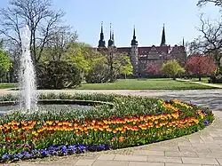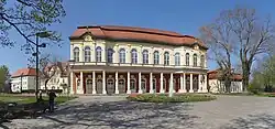 In den Jahren 1604 und 1605 folgten umfassende Erneuerungen unter Melchior Brenner[5] im Auftrag von Administrator Johann Georg I. von Sachsen.[5] Aus dieser Zeit stammt auch der Neptunbrunnen im Innenhof.[6][7] Der 1661 angelegte Schlossgarten gehört heute zum Netzwerk Gartenträume Sachsen-Anhalt.