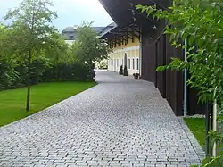 Zum Schloss gehört seit langem auch ein Wirtschaftstrakt mit einem Stallgebäude. Die Fortschrittlichkeit des landwirtschaftlichen Hofgebäudes (Wasserversorgung des Viehs, Fütterungsanlage, Licht) zur Zeit des Fürsterzbischofs Colloredo lobt Friedrich Graf Spaur außerordentlich. Der alte Stall besitzt reihig in sechs hintereinanderliegenden Feldern angeordnete Säulen, über denen ein Platzlgewölbe mit Gurtbögen errichtet ist. Im alten Stallgebäude war vor 1995 eine Tischlerei. Es sollte dann hier ein privates Fahrzeugmuseum eingerichtet werden, was bislang aber nicht zustande gekommen ist. Der östliche, einst vom Stall zuerst durch einen Weg getrennte Holzteil aus der Zeit nach 1800 wurde später mit dem Stall zu einem geschlossenen Bau mit einheitlichem Dach zusammengeschlossen.
