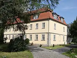 Das denkmalgeschützte Barockschloss steht in einem Park. Das zweigeschossige Gebäude hat einen rechteckigen Grundriss mit neun mal drei Achsen. Auf einem massiv ausgebildeten Erdgeschoss mit kräftigen Ecklisenen befindet sich ein verputztes Fachwerkgeschoss, das von einem Mansardwalmdach mit Dachgauben abgeschlossen wird. Das Eingangsportal ist in der symmetrisch gestalteten Westfassade in der Gebäudemitte angeordnet. Es wird von ionischen Pilastern flankiert und von einem verkröpften Gurtgesims abgeschlossen. Über dem segmentbogigen Türsturz befindet sich die Inschrift „W. E. F. V. S. / 1750“. Hinter dem Portal liegen die Eingangshalle und das Treppenhaus.