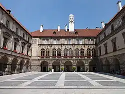 Die Gemäldesammlung stellt den wertvollsten Teil der Lobkowitzschen Sammlung dar. Sie umfasst u. a. Werke von Lucas Cranach d. Ä., Pieter Brueghel d. Ä. (Die Heuernte (1565)), Pieter Brueghel d. J., Paolo Veronese, Peter Paul Rubens (Die Göttin Hygieia (1615)), Diego Velázquez (Porträt der Infantin Margarete (1653)) und Bernardo Bellotto. Gezeigt werden auch die sogenannten spanischen Porträts vom Ende des 16. und Anfang des 17. Jahrhunderts, eine Porträtsammlung von Adelsfamilien und Mitgliedern des Hauses Habsburg.