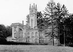 Ferner besaß die Anlage zwei Einfahrtstore, die mit Türmchen und Wappen verziert waren, sowie ein Wachthaus mit einem Bogengang und einem Turm. Immer wenn der Herzog anwesend war, wurde auf dem Turm des Wachthauses eine Flagge gehisst. Der Park war umgeben von einer mit Zinnen gekrönten Mauer.