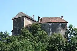 Das heutige Schloss erhebt sich über unregelmäßigem, vielfältigem Grundriss. Der Innenhof wird von Trakten mit unterschiedlicher Höhe umschlossen. Das rundbogige Südportal trägt das Wappen des Freiherrn Johann Karl Kemeter und seiner Frau Freiin von Pranckh mit einem Inschriftenstein von 1675. Über dem hofseitigen Torbogen sind die Jahreszahlen 1329 und 1673 zu sehen. An drei Seiten des Hofes befinden sich im ersten und zweiten Obergeschoß Säulenarkaden aus dem 16. Jahrhundert.