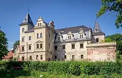 Das im 19.–20. Jahrhundert erweiterte Schloss hat drei Turmanbauten um das Kerngebäude herum und einen turmartigen Risalit. Seitlich entstand ein flach gedeckter Anbau. Im Inneren blieben Gewölberäume des 16. Jahrhunderts erhalten.
