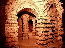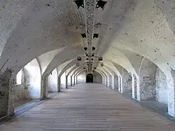 Am westlichen Ende der Galerie befindet sich ein großer rechteckiger Saal von enormer Höhe mit abgeschrägten Ecken, Tonnengewölben und tiefen Mauernischen. Eine Treppe an der Südseite führt an die zweischalige Wölbezone, von wo aus ehemals ein Gang und eine Treppe zu einem um das gesamte Hauptgebäude laufenden Dachspaziergang führten. Es wird vermutet, dass sich an der Decke ursprünglich ein Fresko von Bartolomäus Spanger befand. Davon ist eine Federzeichnung als Vorstudie in der Wiener Albertina erhalten.