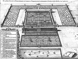 Ab dem 17. Jahrhundert wurden Teile der Anlage abgebaut oder verlegt; das ab 1744 als Munitionsdepot genutzte Schloss und die Gärten verkamen.
