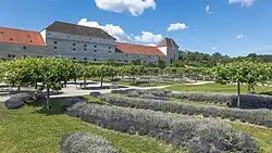 - Dem zentralen Hauptgebäude mit Nordterrassen, Haupthof und dem U-förmigen Ehrenhofgebäude.