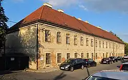 - Das historische Meiereigebäude, heute außerhalb des unmittelbaren Areals an der Neugebäudestraße gelegen.