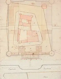 Der Fürstbischof von Münster, Friedrich Christian von Plettenberg-Lenhausen, erwarb das landtagsfähige Gut Nordkirchen am 24. Oktober 1694[21] für 250.000 Reichstaler[22] und vergrößerte den Besitz sowie den Einflussbereich durch Zukauf weiterer Ländereien und Gerichtsbarkeiten in der Umgegend. Anschließend brachte er ihn am 15. September 1695 in einen mit seinen lebenden vier Brüdern begründeten Familienfideikommiss ein.[23] Danach begann er damit, das bestehende Wasserschloss zu einem repräsentativen Stammsitz seiner Familie auszubauen, denn bisher besaßen die von Plettenberg nur altertümliche Herrensitze im Sauerland. Für den geplanten Umbau und die Modernisierung der vorhandenen Gebäude engagierte er 1697 Gottfried Laurenz Pictorius, der anfänglich nur kleinere Umbauten vorsah. Ab März wurde Pictorius bei den Planungen durch den aus Den Haag stammenden Jacob Roman unterstützt. Er war Hofarchitekt des Statthalters der Niederlande und hatte zusammen mit Daniel Marot für Wilhelm III. von Oranien das Schloss Het Loo in der Nähe von Apeldoorn errichtet, das als Vorbild für den Neubau diente. Ab 1699 arbeitete auch Pictorius’ jüngerer Bruder Peter an den Nordkirchener Plänen mit. Ein Entwurf, zu dem zusätzlich Steven Jacobsz Vennekool Anregungen gegeben hatte, fand 1702 endlich die Zustimmung des Kirchenfürsten und wurde von ihm zur Ausführung genehmigt. Er sah nicht mehr nur einen Umbau der bestehenden Gebäude vor, sondern deren Abriss und einen vollständigen Neubau im Stil des französischen Barock-Klassizismus.