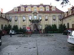 Seine heutige Gestalt erhielt das Schloss etwas nach 1895 unter den Grafen Ballestrem, u. a. mit den Grafen Franz von Ballestrem, verheiratet mit Hedwigis Gräfin Saurma, Freiin von und zu der Jeltsch,[7] Besitzer von gesamt 11.353 ha in Schlesien,[8] mit Ausbau der Seitenflügel im neobarocken Stil. Der umgebende Wassergraben wurde zeitgleich zugeschüttet. Der Garten am Schloss wurde als Rasenparterre mit Formgehölz erhalten und mit barocken Skulpturen der Hl. Florian und Michael geschmückt.[9] Des Weiteren befanden sich die Gruppenskulpturen Frühlung, Sommer, Herbst und Winter, geschaffen vom Bildhauer Josef Wilhelm Carl Limburg, im hiesigen Schlosspark.[10]