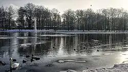 1896 kaufte die Stadt Oberhausen einen 19 Hektar[3] großen, noch nicht erschlossenen Teil des Schlossareals zum Preis von 122.700 Goldmark[19] und gestaltete ihn ab 1897[5] zu einem öffentlich zugänglichen Park um. Am 22. März 1898 wurde dieser anlässlich des 100. Geburtstags von Wilhelm I. „Kaisergarten“ getauft. 1903 entstand durch eine Spende der Gutehoffnungshütte[3] an der damaligen Sterkrader Chaussee (heute Konrad-Adenauer-Allee) mit dem sogenannten Parkhaus ein Gastronomiebetrieb im Kaisergarten, der die „gute Stube“ Oberhausens war.[20] 1908 erwarb die Emschergenossenschaft das Schloss und die dazugehörenden, 600 Morgen großen Ländereien,[21] die sie 1911 an die Stadt Oberhausen weiterveräußerte. Durch die Begradigung der Emscher konnte der Kaisergarten bis zum Rhein-Herne-Kanal erweitert werden und wurde als Volkspark umgestaltet. Doch die Begradigung hatte nicht nur Vorteile: Die daraus resultierende Grundwasserabsenkung ließ den großen Schlossteich allmählich austrocknen, sodass dieser 1924 vertieft werden musste, damit er wieder Wasser führte. Der Aushub wurde genutzt, um einen künstlichen, heute „Ottoberg“ genannten Hügel im Park aufzuschütten.[5]