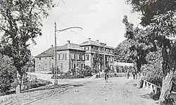 In den 1920er Jahren begann auch die Tradition der Tierhaltung im Kaisergarten, denn schon 1927[5] wurden Tiere im Park gehalten. Sie wurde aber kurz nach Kriegsbeginn 1939 eingestellt, weil die Fläche für den Gemüseanbau zur Versorgung der einheimischen Bevölkerung benötigt wurde.[19] Die Nähe zu den rund um das Schlossareal entstandenen Industrieanlagen wurde dem Gebäude während des Zweiten Weltkriegs zum Verhängnis: Das Dach des Herrenhauses wurde stark beschädigt und das Kleine Schloss schwer getroffen. Auch die übrigen Teile des Wirtschaftshofes mussten Beschädigungen hinnehmen. Das Parkhaus wurde durch Bombentreffer völlig zerstört.