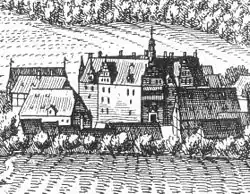 Die heutige Schlossanlage steht auf den Fundamenten einer Wasserburg des Mittelalters und erscheint in einer historischen Beschreibung so:
