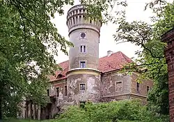 Um 1550 wurde ein Schloss im Stil der Renaissance, vermutlich von einem Festungsgraben umgeben. Während eines Umbaus des Schlosses in den Jahren 1615–1620 fertigte Johann Pohla aus Glogau, ein Vertreter des Manierismus, das reich verzierte Hauptportal an. Derzeit wird der Bau restauriert. Nach der polnischen Annexion der Region beherbergte der Bau eine landwirtschaftliche Agentur.