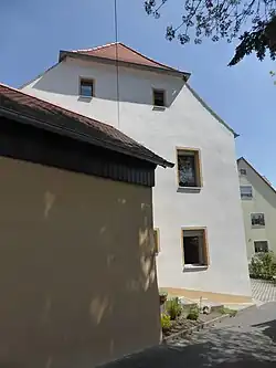 Das Bauernhaus mit einem ehemaligen Weinkeller auf der gegenüberliegenden Straßenseite, ein eingeschossiger Putzbau mit einem Satteldach aus dem 18. Jahrhundert, gehört dazu.