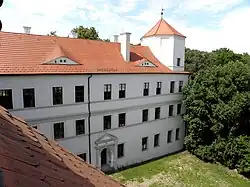 Das Schloss ist als unregelmäßige Dreiflügelanlage um einen nach Nordosten offenen Hof angelegt. Es besteht aus dreigeschossigen Putzbauten. Der langgestreckte Südflügel hat in der Mitte eine Tordurchfahrt mit Tonnengewölbe. Die Gewölbe der Kellerräume stammen aus dem Mittelalter. Im Erdgeschoss befinden sich Gewölbe mit Stichkappen.
