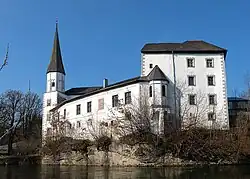 1830 wurde der heutige Marstall (das westliche Wirtschaftsgebäude) unter Graf Maximilian August von Törring-Gutenzell erneuert; ebenso der Verbindungsgang vom Schloss zum Verwaltungsgebäude und das Jagdhaus. Er ließ auch die Allee bepflanzen.[14] Zwischen 1860 und 1891 wurde das Schloss von einem Verwalter bewirtschaftet. Der Turm wurde erhöht. In den 1930er Jahren wurde der Fels mit Beton verfestigt, nachdem die Traun ihn in größeren Teilen ausgehöhlt hatte.[15] Zu der Zeit war das Schloss bereits baufällig und nicht mehr bewohnt. Während des Zweiten Weltkrieges fanden kurzzeitig Flüchtlinge Unterkunft im Schloss. In der Nachkriegszeit wurden aus Platznot in der Volksschule für drei Jahre Kinder im Schloss unterrichtet.[16] Seit Anfang der 1930er bis in die 1970er wurde das Verwaltergebäude nur vom Hackl-Sepp, dem Hausmeister, bewohnt. Das Gebäude an der Stelle des ehemaligen Pulverlagers wurde 1998 neu errichtet.