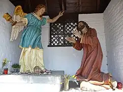 Über einen Höhenrücken erreicht man eine weitere Figurengruppe mit Jesus am Ölberg und einem Engel. Derzeit ist der Possenhofener Kalvarienberg wie das Erholungsgelände Paradies (ehemaliger Park des Schlosses Possenhofen) im Besitz der Landeshauptstadt München. Wo sich heute ein schmaler Pfad an Kreuzwegstationen zur Kreuzigungsgruppe hinaufschlängelt, bot ursprünglich eine terrassierte breite Treppenanlage Zugang. Auftraggeber war das bayerische Kurfürstenpaar Ferdinand Maria und Henriette Adelaide von Savoyen, die mit dem Erwerb von Schloss Possenhofen die unmittelbare Umgebung gestalten ließen. Vorbilder für die weitläufige barocke Anlage des Possenhofener Kalvarienbergs sind in den Sacri Monti Norditaliens zu sehen, besonders der Sacro Monte di Oropa, den die Kurfürstin Henriette Adelaide in ihrer Jugend gemeinsam mit ihrer Familie besuchte.