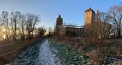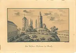 Schloss Pouch, ohne Dach und entkernt, links und rechts die mittelalterlichen Türme, 2024 -