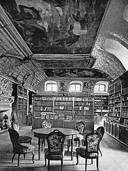 2014 übertrug Heinrich Freiherr von Friesen, letzter männlicher Nachfahre der Familie von Friesen, seine Eigentumsrechte an den restituierten Bänden der einst bis zu 10.000 Werke umfassenden Schlossbibliothek an die Kultur- und Umweltstiftung Leipziger Land der Sparkasse Leipzig.[11] Die Bibliothek zählte zum wertvollsten Bestand von Schloss Rötha. Sie galt als die größte Privatbibliothek Sachsens und war überregional bekannt. So machte im Oktober 1757 Friedrich der Große auf einem Eilmarsch von Schlesien Richtung Roßbach in Rötha halt. Er übernachtete und besichtigte die Bibliothek. Ein großer Teil der Bücher, unter anderem eine Schedelsche Weltchronik von 1493 gelten als verschollen.[12][13][14]