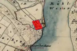 Das ehemalige Schlösschen war zu Beginn des 20. Jahrhunderts ein einsam an einem Weiher gelegenes Wirtshaus mit einer Mühle. Das Erdgeschoss bestand aus Stein, das Obergeschoss aus Fachwerk. Bedeckt wurde es mit einem mächtigen Walmdach. Auf der Wetterfahne waren die Jahreszahl „1712“ und die Buchstaben „BS“ (= Bartholomäus Sechser) zu sehen.