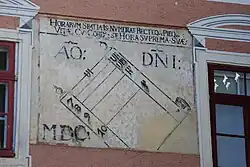 Der dreigeschoßige zweiflügelige Bau ist an der Straßenseite einmal abgewinkelt und stark in die übrige Bebauung des Kirchenplatzes einbezogen. Die Außenfront mit regelmäßigen, teilweise als Scheinarchitektur aufgemalten Fensterachsen ist durch die Jahreszahl 1582 datiert und zeigt als Rest der Renaissancedekoration den Teil eines Sgraffitobandes.[2]