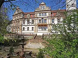 Das Schloss wird aktuell als Hotel genutzt. Der Bergfried kann bestiegen werden und bietet einen kontrastreichen Überblick: Im Westen Chemiepark und Kohlekraftwerk, im Norden und Osten die Saale-Elster-Aue mit der Neubaustrecke Erfurt–Leipzig/Halle.