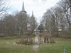 Nach neunmonatiger Bauzeit (bis Mitte Dezember 1993) wurden rekonstruierte Turmhauben auf die gesicherten, aber ruinösen Türme aufgesetzt.[4]