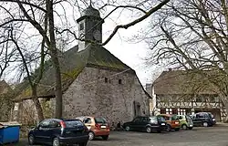 Wenige Meter östlich des Schlosses steht ein eingeschossiger Satteldachbau aus Bruchsteinmauerwerk, die Anfang des 17. Jahrhunderts errichtete ehemalige Schlosskapelle. Ihren Nordgiebel schmückt ein Krüppelwalmdach. Über dem Osteingang ist ein Allianzwappen aus dem Jahr 1603 eingelassen. Es trägt neben der Jahreszahl die Kürzel „GVK+UVKGZT“ (Georg von Künsberg und Ursula von Künsberg geboren zu Thurnau). Die beiden gelten somit als Erbauer der Kapelle. Auf dem Dach der ehemaligen Kapelle befindet sich ein später aufgesetzter, achtseitiger Dachreiter mit geschwungener Haube. Seit Mitte des 19. Jahrhunderts dient die ehemalige Kapelle als Scheune.[2]