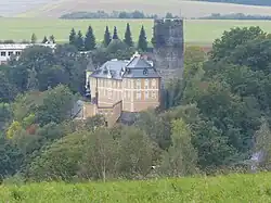 In der Ära der Tschechoslowakei ließ man die Schlossanlage verfallen, inzwischen ist sie renoviert, aber nicht für die Öffentlichkeit zugänglich. Das Schloss liegt in Hanglage am Rande des Ortes. In der Verlängerung der Straße gelangt man zur Wallfahrtskirche Maria Loreto. Ältester Bauteil ist der Bergfried inmitten der Schlossanlage, der sich eine Schlosskapelle anschließt.
