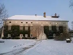 Das Schloss ist ein Dreiflügelbau um einen Innenhof. Den Hof umschließen Arkadengänge, im Schloss befindet sich eine Waffensammlung und Familienporträts. Die früher bestehenden vier Ecktürme sind nach einem Brand abgetragen und nicht mehr aufgebaut worden. Die Fassade weist einen sparsamen Dekor mit gemalten Säulen und Stuckverblendung auf. Bemerkenswert sind die im ersten Stock vorgesetzten Fenstergitter. Das Schloss liegt in einem von einer Mauer umgebenen weitläufigen Parkgelände. Zu dem Schloss gehört auch ein Meierhof mit einer Fischzucht (Koi).[2]
