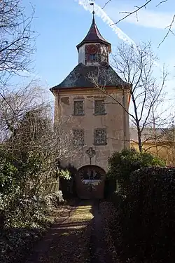 Außerdem ist ein Gasthaus südöstlich des Schlosses, ein zweigeschossiger Walmdachbau aus dem 18. Jahrhundert, zusammen mit seinem Nebengebäude unter der Nummer D-5-77-115-32 in die Denkmalliste eingetragen.[6]