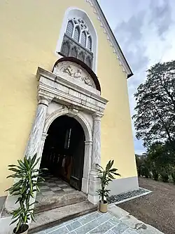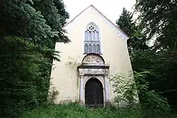 Die Kapelle ist ein kleiner Bau auf einer Terrasse südlich neben dem Schloss. Der wohl 1597 errichtete Sakralbau erfuhr in der ersten Hälfte des 19. Jahrhunderts weitgehende Erneuerungen. Das von Halbsäulen gerahmte Spätrenaissancportal ist am Gebälk mit „Sigfridus Steyrer aedificavit 1597“ bezeichnet. Darüber befindet sich eine Lünette mit einem Marmorrelief von 1897. Die darauf dargestellte Maria zwischen Engeln ist eine Kopie einer florentinischen Arbeit des frühen 16. Jahrhunderts. Das große neugotische Maßwerkfenster über dem Portal und der umlaufende Blendbogenfries entstanden im 19. Jahrhundert. Das Kapelleninnere schmücken Biedermeiermalereien.
