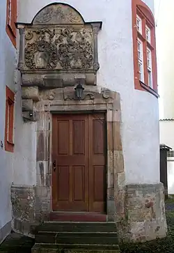 Die Inschrift unter dem Fester im 2. Stockwerk bezieht sich auf die Eltern von dem oben genannten Christoph. Melchior von der Tann (* vor 1451; † 1524) und seiner Frau Margaretha von Mansbach: „FILII ET FILIAE MELCHIORIS VON DER THAN ET MARGARETHAE CONIVGIS SVAE NATAE EX FAMILIA MANSBACH“ mit insgesamt 17 Kindern (Christoph wird hier an letzter Stelle genannt): „1 MARTINVS, 2 ELISABETHA, 3 EBERHARDVS, 4 KATHARINA, 5 CONRADVS, 6 ANNA, 7 GEORGIVS, 8 FRIDERICVS, 9 ALEXANDER, 10 ELISABETHA, 11 CONRADVS, 12 WENDELINVS, 13 CAROLVS, 14 DOROTHEA, 15 VRSVLA, 16 GEORGIVS, 17 CHRISTOPHORVS“.