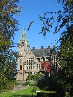 Der Erbauer, Graf Gustav Fredrik Bonde, ließ das Schloss um das Jahr 1900 für seine Frau Anna Koskull als Hochzeitsgeschenk errichten. Inspiriert wurde die Gestaltung des Bauwerkes durch die mittelalterlichen Schlösser des Rheintales.