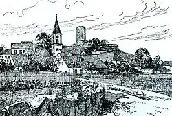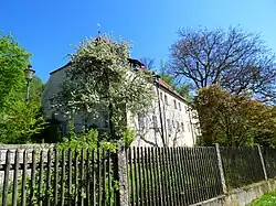 Das zeitweise als Forsthaus genutzte Gebäude ist ein Halbwalmdachbau, der im Kern aus dem 17. und 18. Jahrhundert stammt. Dazu gehören Remisen- und Lagergebäude mit den Felsenkellern der ehemaligen Schlossbrauerei aus der Zeit um 1820, und ebenso der ehemalige Schlossstadel (Dorfplatz 8), ein Granitsteinbau mit Halbwalmdach aus der Zeit um 1900. Seitlich davon befindet sich eine Tormauer mit einer Einfahrt zum Schloss.