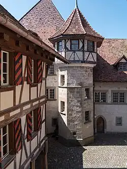 Das Schloss ist eine mehrmals umgebaute ehemalige Reichsburg. Die ältesten Teile davon sind der Bergfried und die hofseitige Hälfte des Palas aus der 2. Hälfte des 12. Jahrhunderts. Der über Eck gestellte Hauptturm aus ungewöhnlich schön geformten Tuff-Bossenquadern enthielt zuoberst zwei bewohnbare mit frühgotischen Fenstern versehene Stockwerke, verbunden durch im Mauerkern ausgesparte Wendeltreppe. Weiter enthält das Schloss mehrere Gefangenenzellen, „Mörderkästen“ genannt, darunter jener von Niklaus Leuenberger, und verschiedene kostbare Ausstattungsteile des 17. und 18. Jahrhunderts. Im Schlosshof finden sich Palas, Torturm und Kornhaus. Der Treppenturm von 1641, mit barocker Aufsatzstube unter einem Spitzhelm, stammt wohl von einem Meister aus Prismell.