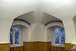 Ein Raum, der als Schlafraum gedient hatte, ist mit Wandmalereien ausgestattet, die mit „Johann Oswald fecit“ bezeichnet sind.