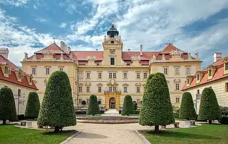 Schloss Feldsberg (tschechisch Zámek Valtice) ist ein barockes Schloss im mährischen Valtice (deutsch Feldsberg). Mit rund 131.000 Besuchern im Jahr 2024 ist es eines der meistbesuchten Schlösser Tschechiens.[1] Es war Sitz des Hauses Liechtenstein und ist Teil der UNESCO-Welterbestätte Kulturlandschaft Lednice-Valtice.[2]