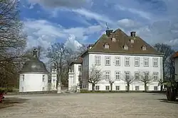 1720 ließ es Drost Johann Friedrich Ignaz mit seinen drei Brüdern Ferdinand Ernst Adam, Adolf Franz Friedrich und Mauritz Lothar von der Lippe – allesamt Domherren in Paderborn – im Stil des Barock auf einer quadratischen Insel am Heubach, einem Zufluss der Emmer, vom Baumeister Justus Wehmer errichten.