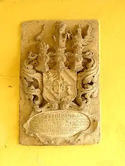 In der Durchfahrt befindet sich ein Wappenstein Sprinzenstein von 1659.