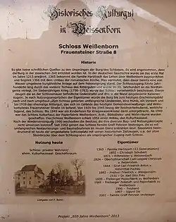 Alexander von Hartitzsch verkaufte 1802 Schloss und Rittergut an Christoph Schubert, der beides an einen Rittmeister von Weißenbach weitergab. Oberst Freiherr von Wangenheim erwarb das Rittergut 1882 vom Grafen Hohenthal-Püchau und behielt es bis 1924. 1931 wurde Dr. Otto Fritz neuer Besitzer des Rittergutes und 1945 enteignet. Während der DDR-Zeit befand sich ein Kulturhaus in den Räumlichkeiten. Das Schloss Weißenborn ist seit 2010 wieder in Privatbesitz.